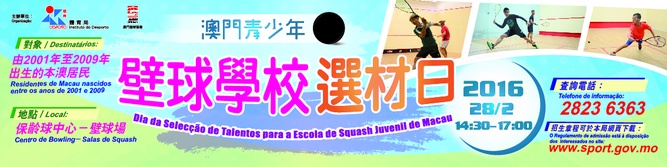 Dia da Selecção de Talentos para a Escola de Squash Juvenil de Macau
