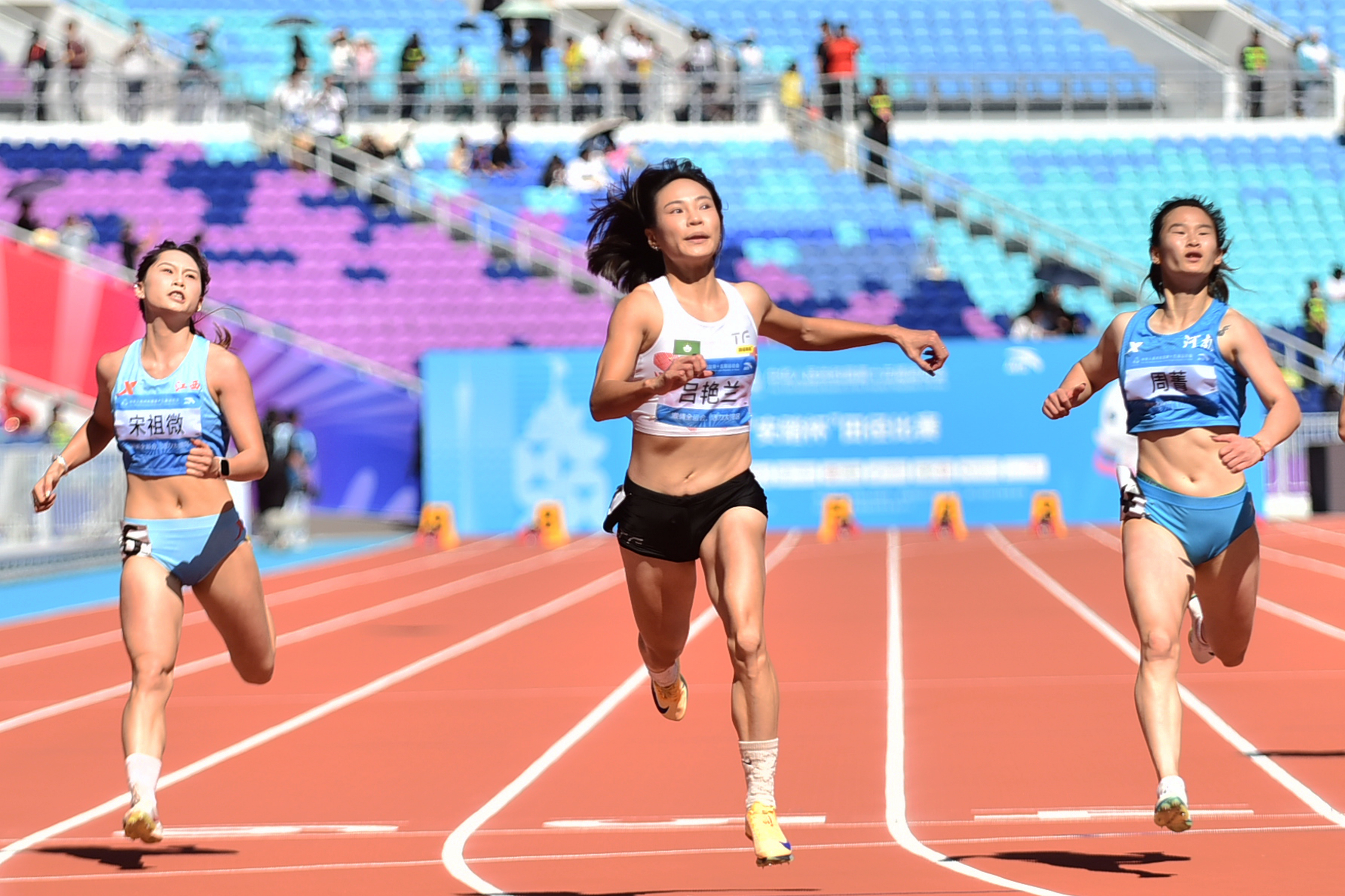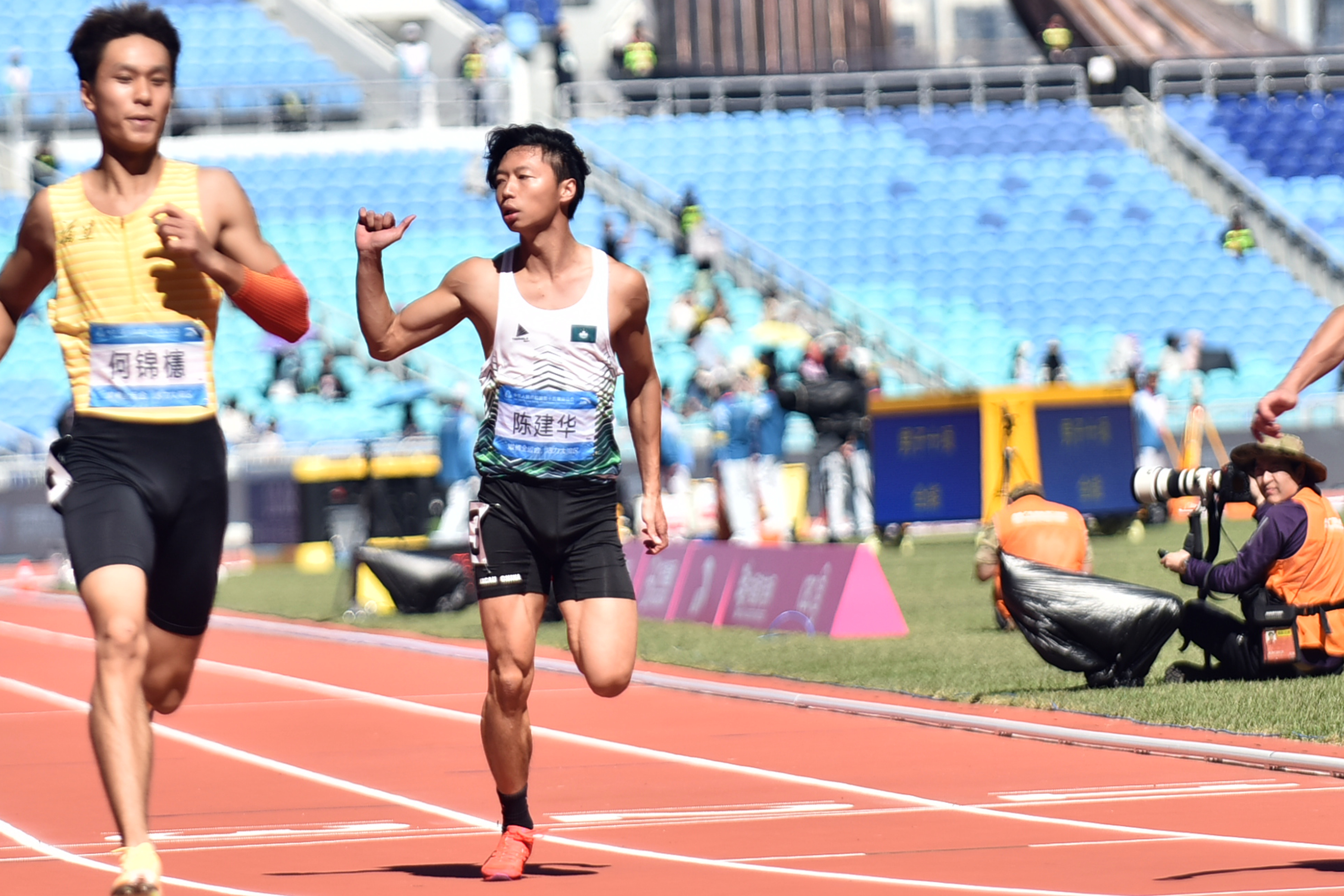 繼首日4X100米混合接力打破澳門紀錄後,澳門隊在田徑賽場再刷新一項紀錄,呂艷蘭(LOI IM LAN)在女子100米跑出11秒62,打破由自己保持的澳門紀錄,並且以預賽第9名的成績晉級明(17)日複賽;另外2位跑手冼蔚楠(SIN WAI NAM)及王嘉蕙(WANG KA WAI),分別跑出12秒60和13秒12,排第24名和第27名,男子100米,陳建華(CHAN KIN WA)跑出10秒54、梁洛堯(LEONG LOK IO)跑出10秒68、郭曉楠(KUOK HIO NAM)跑出11秒23,分別排第26名、第29名和第30名,女子200米預賽,陸嘉堯(LOK KA IO)跑出27秒68,排第24名,男子400米欄,張子聰(CHEONG CHI CHONG)跑出52秒91排第19名,上述運動員均未能晉級。