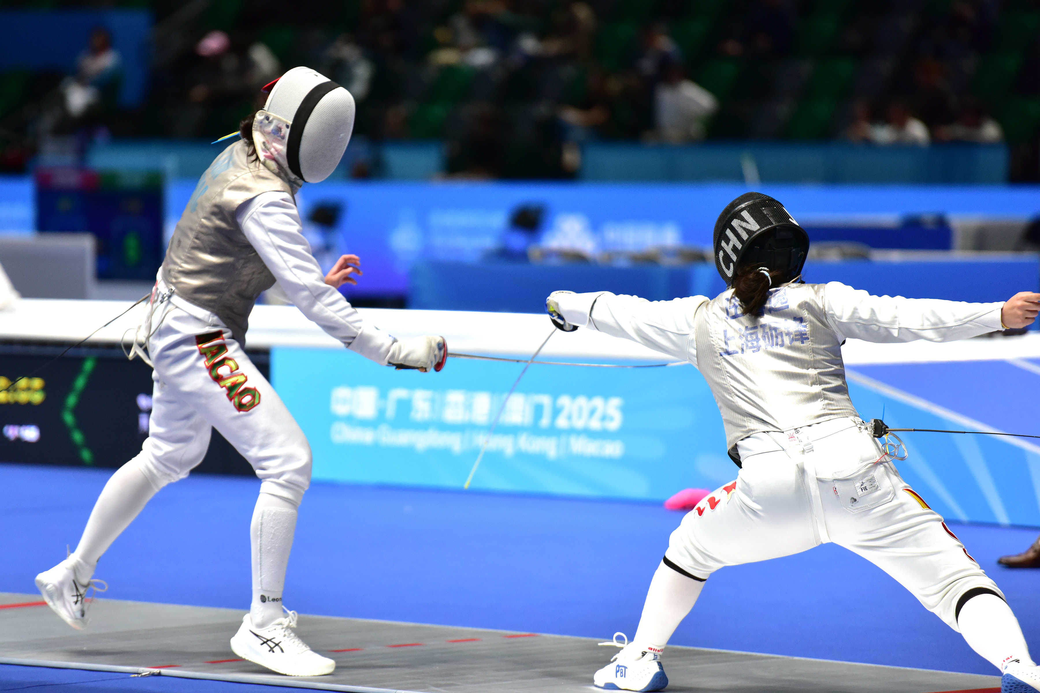 在香港賽區進行的劍擊賽事,女子花劍個人賽有顧曉琳(KU HIO LAM)成功闖過小組賽階段,取得3勝3負,先後擊敗香港選手、湖南及以個人名義參賽的選手,並以小組賽總排名第13位,取得晉級32強淘汰賽的資格,惜最後在首圈淘汰賽負重慶選手8比15,而止步於32強;另外兩名女子花劍選手,林芷薇(LAM CHI MEI)與易碧真(IEC PEK CHAN)經過小組賽階段後均未能晉級,總成績分別排第41位和第42位。此外,林承佑(LIN SENG IAO)出戰男子重劍,在小組賽錄得1勝5負,總成績排第36位,未能晉級。