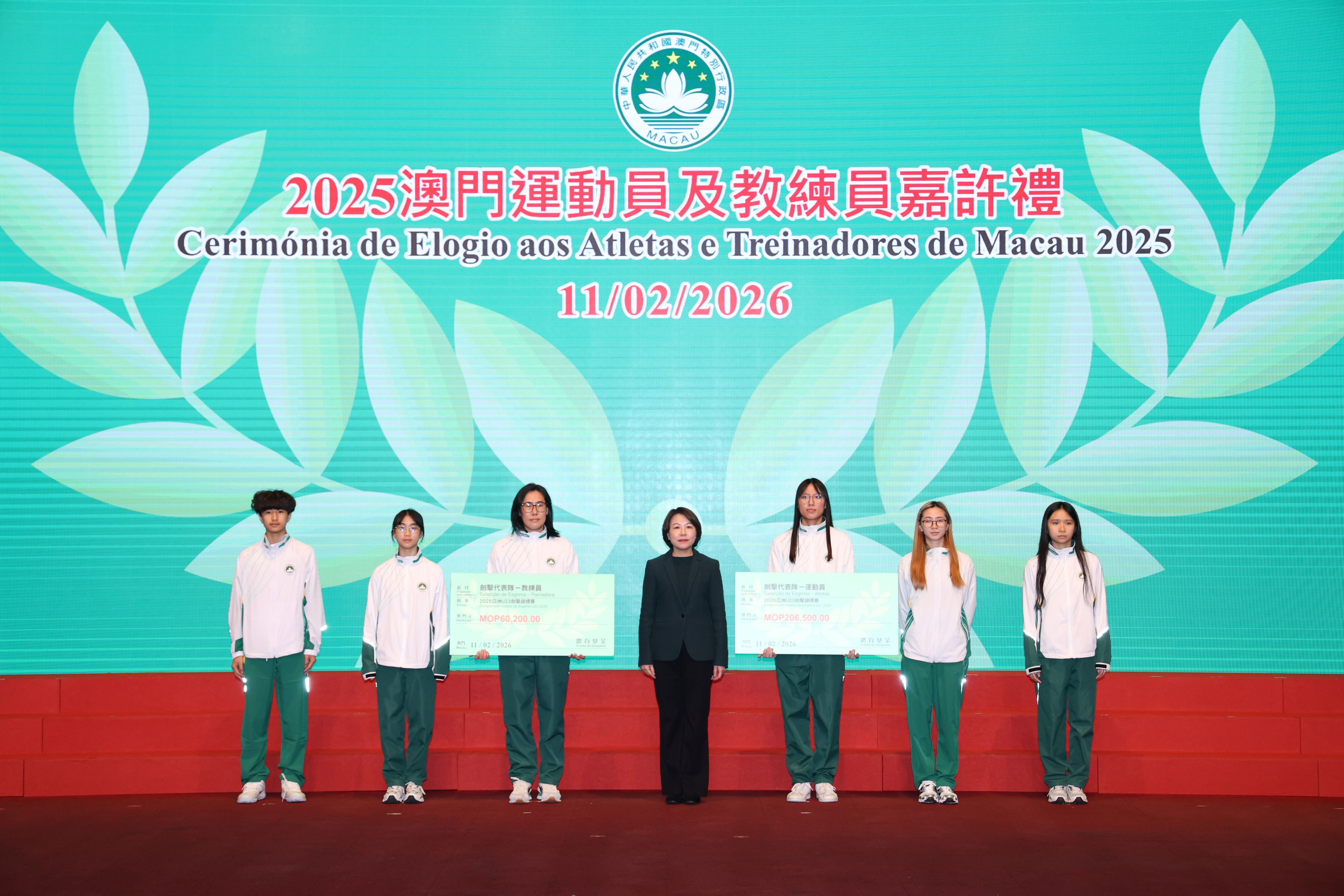 為表彰在2025年度參加體育比賽中獲得優秀成績的本澳運動員、教練員及技術輔助人員,以及為鼓勵澳門體育代表團在今年各項大型體育賽事中創造佳績,「2025澳門運動員及教練員嘉許禮暨2026體育代表團誓師儀式」今(11)日晚上七時半舉行,社會文化司司長柯嵐等出席儀式,勉勵並祝賀一眾運動健兒。