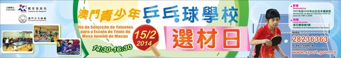 澳門青少年乒乓球學校選材日