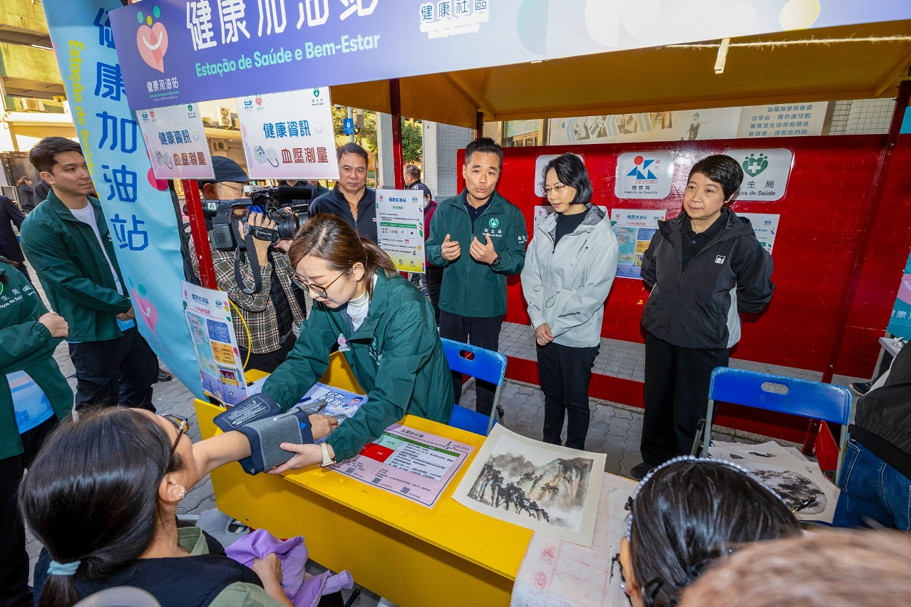 隨後,一眾嘉賓前往現場設立的“健康加油站”,了解運作情況並與居民互動交流,氣氛熱烈。“健康加油站”首階段活動於1月12日至3月31日期間,逢星期一至五(政府假日、惡劣天氣及維護期間除外)上午8:00至10:00及下午16:30至18:30,於紀念孫中山市政公園、白鴿巢公園、綠楊花園休憩區、華士古達嘉馬花園、永寧廣場休憩區、宋玉生公園、加思欄花園及氹仔奧林匹克大馬路休憩區共八個站點同步開展,敬請留意開放時間。各站配有“健康加油站”橫額,工作人員亦會佩戴相關胸針,以便居民識別。文化局、體育局及衛生局將分別派出“文化傳播員”、“健身指導員”及“健康促進員”,為居民提供文化活動指導與資訊、個性化科學運動指導、免費血壓測量、健康資訊與評估,並協助預約衛生中心醫療服務,包括疾病篩查、疫苗接種、心理評估等多項內容。