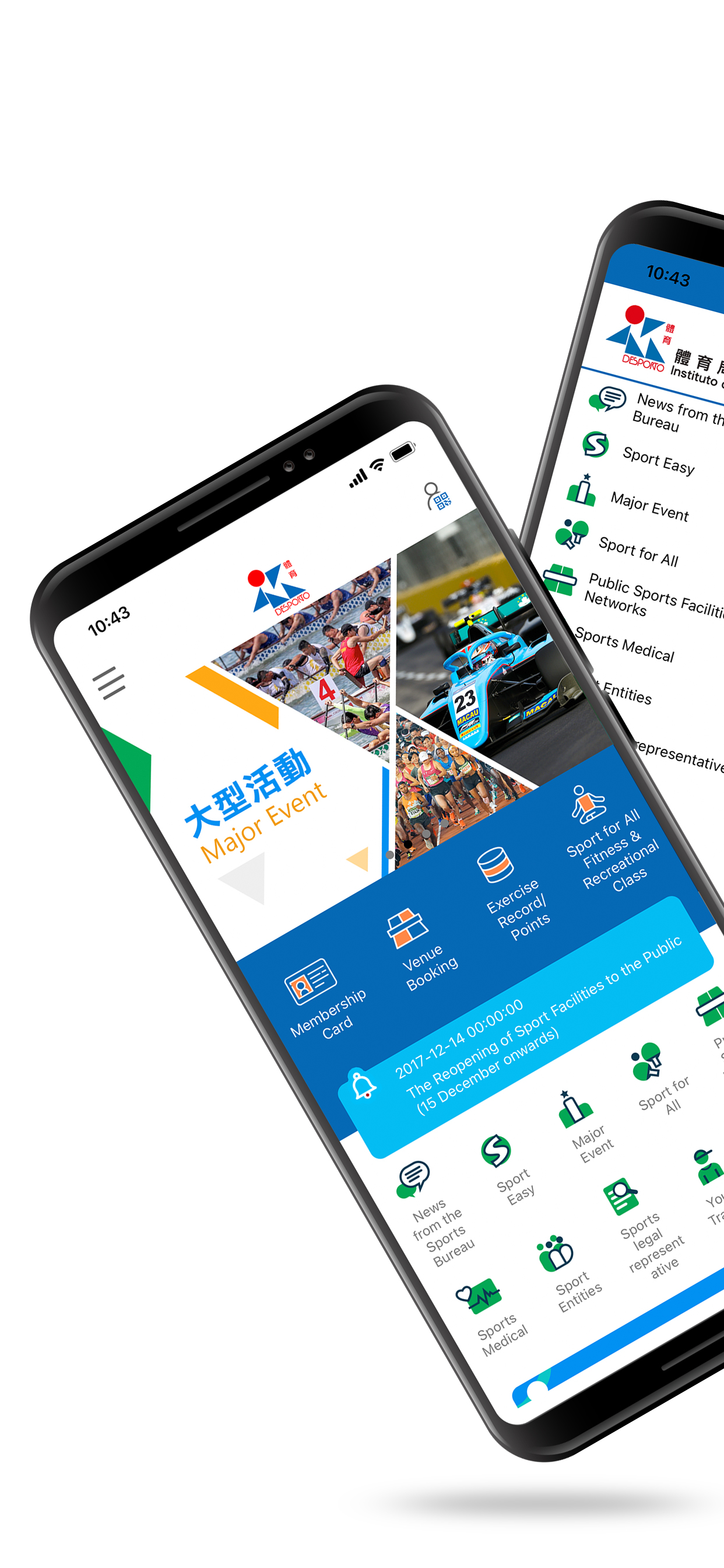 Not only the sports events , the latest information of the Sports Bureau and also the Public Sports Facilities Network venue availability can be found through the application, but also Sport Easy members can login for venue bookings , point checking and search for membership number. Moreover, participants of the Sport for all fitness and recreational classes can look up the application status, register for ballot and check ballot results and remaining quotas, etc.