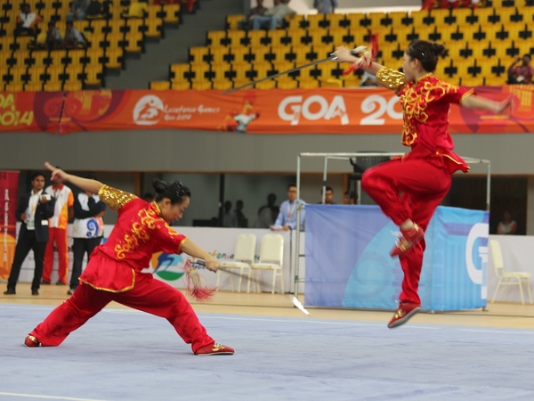 Em taolu de Wushu, dia 28, CHAN IAN I na prova de nangun feminino obteve 9.37 pontos, conquistando uma medalha de ouro e na prova de nandao feminino obteve 9.27 pontos, conquistando outra medalha de prata. TONG WENG FAI na prova de taijijian masculino obteve 9.60 pontos, HO PUI KEI na prova de taijijian feminino obteve 9.55 pontos e SONG CHI KUAN na prova de changshu masculino obteve 9.52 pontos, conquistando os três atletas três medalhas de ouro para Macau. A atleta LEI WENG SI na prova de gunshu feminino obteve 9.52 pontos, conquistando uma medalha de prata, e WU CHI IN na prova de gunshu masculino obteve 9.32 ponto, classificando em 4º. Lugar. No dia 29, HO PUI SI e LEI WENG SI na prova duilian feminino obtiveram 9.40 pontos, conquistando uma medalha de ouro. SONG CHI KUAN e WU CHI IN na prova duilian masculino obtiveram 9.32 pontos, conquistando uma medalha de prata. LEI IN LAM na categoria -70 kg de sanshou perdeu com atleta da Índia no final, conquistando uma medalha de prata.