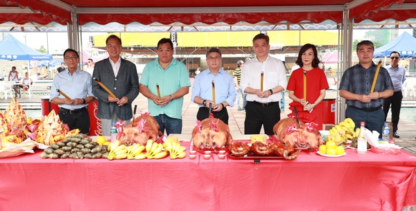 Presidiram às cerimónias, o Sr. Pun Weng Kun, Presidente do Instituto do Desporto, Sr. Chung Hon Kun, Presidente da Direcção da Associação de Barcos de Dragão de Macau, China, Sr. Vong Iao Lek, Director-Geral dos Serviços de Alfândega, Sr. Ma Kam Keong, Administrador do Conselho de Administração do Instituto para os Assuntos Cívicos e Municipais, Sra. Joana Maria Noronha, Subdirectora da Direcção dos Serviços de Administração e Função Pública, Chefe Principal Wong Wai Un, Director da Eacola de Bombeiros do Corpo de Bombeiros, Sr. Charles Lo, Presidente do Comité Olímpico e Desportivo de Macau, China. Todos os convidados procederam à vivificação e bênção dos novos barcos-dragão.