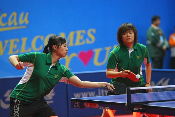 澳門隊昨日在男、女子雙打均以局數0-4不敵德國隊及香港隊,未能晉級。梁健華/謝永興面對德國隊派特里克.鮑/海爾斯徹,開局不順以4-11先失一局,其後在主場球迷吶喊助威下有不俗表現,第二局初段曾領先對手,並曾數度打平,惜未能把握爭取一局勝仗,再連失兩局7-11,第四局主隊無懼對手,曾一度威脅德國隊,比分差距徘徊兩、三分,但後勁不斷以8-11見負,總局數0-4結束賽事。女子方面,鍾穎儀/馬秋燕面對實力強勁的香港隊帖雅娜/姜華珺,以局數0-4敗北(8-11,4-11及兩盤3-11)。