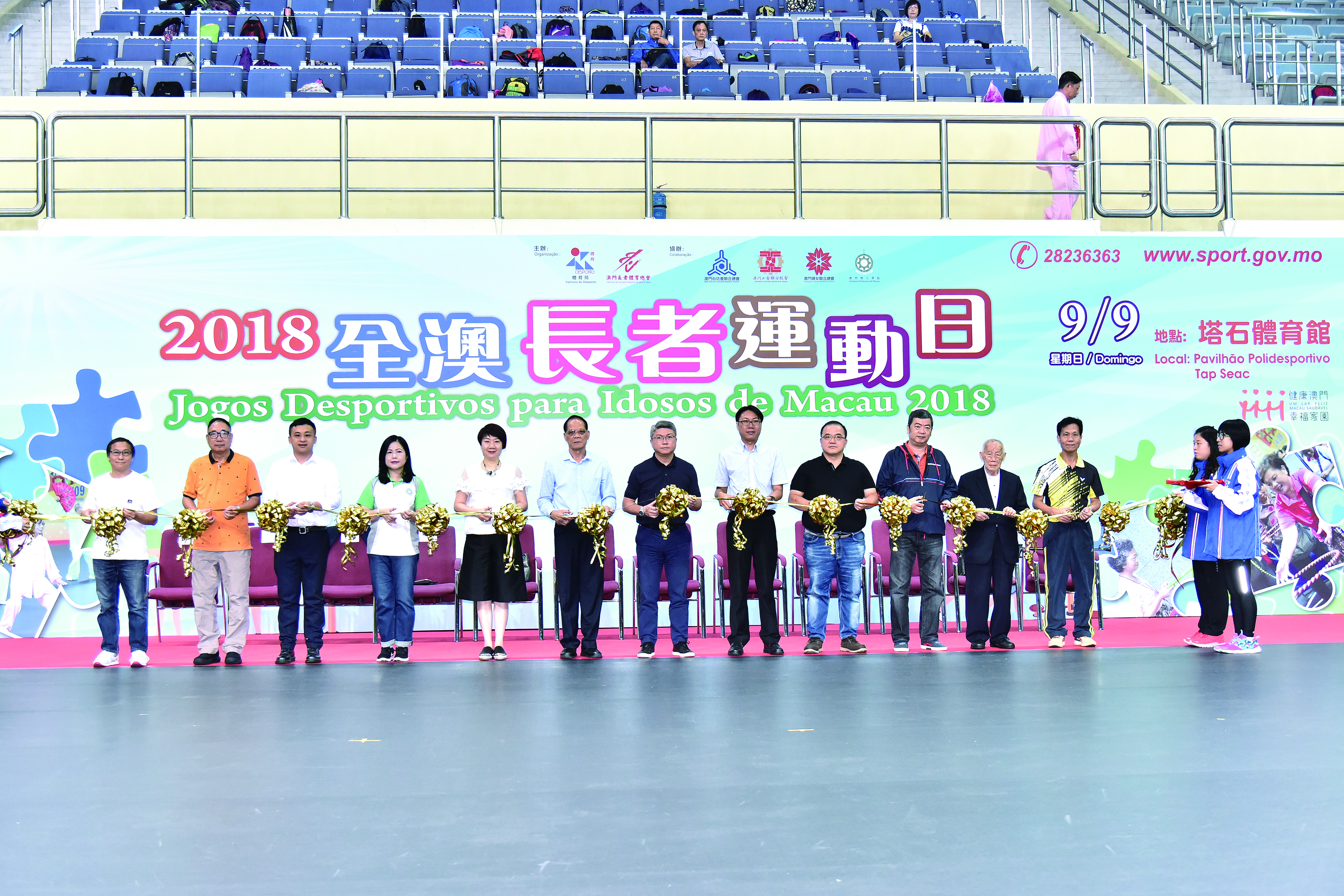 由體育局和澳門長者體育總會合辦,澳門街坊會聯合總會、澳門工會聯合總會、澳門婦女聯合總會和澳門理工學院長者書院協辦的“2018全澳長者運動日”,於9月9日在塔石體育館舉行,活動吸引了約2,000人次參與。體育局局長潘永權表示,全澳長者運動日向來深受歡迎,因此,體育局希望藉著多舉辦適合不同年齡層參與的活動,讓廣大市民共享運動樂趣。