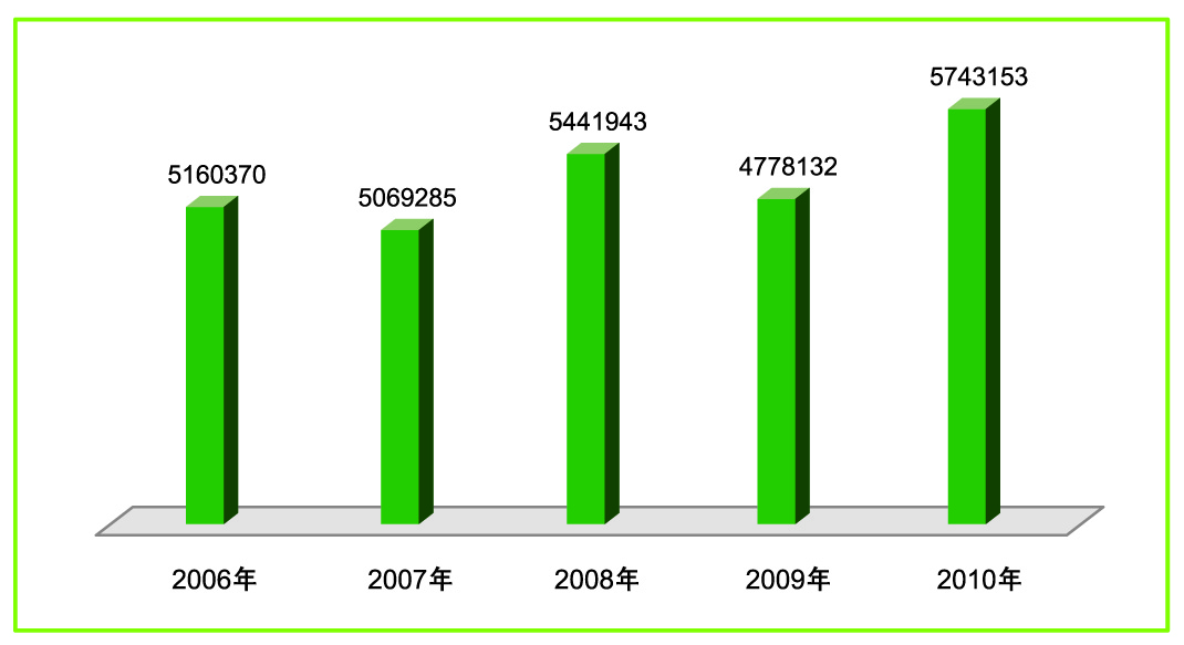 圖二 2001-2010年澳門體發局組織開展的大眾康體活動參加人數