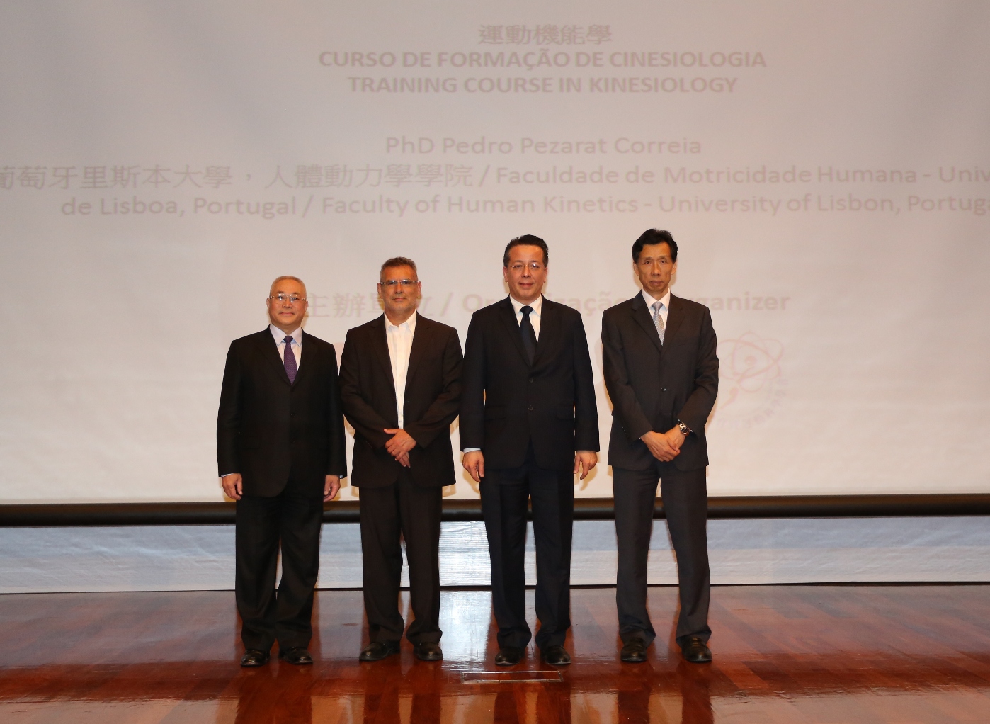 體育發展局局長戴祖義、澳門理工學院體育暨運動高等學校校長楊再淮及澳門體育暨運動科學學會會長梁少培出席課程開課,分別向Pedro Pezarat Correia教授致送紀念品。