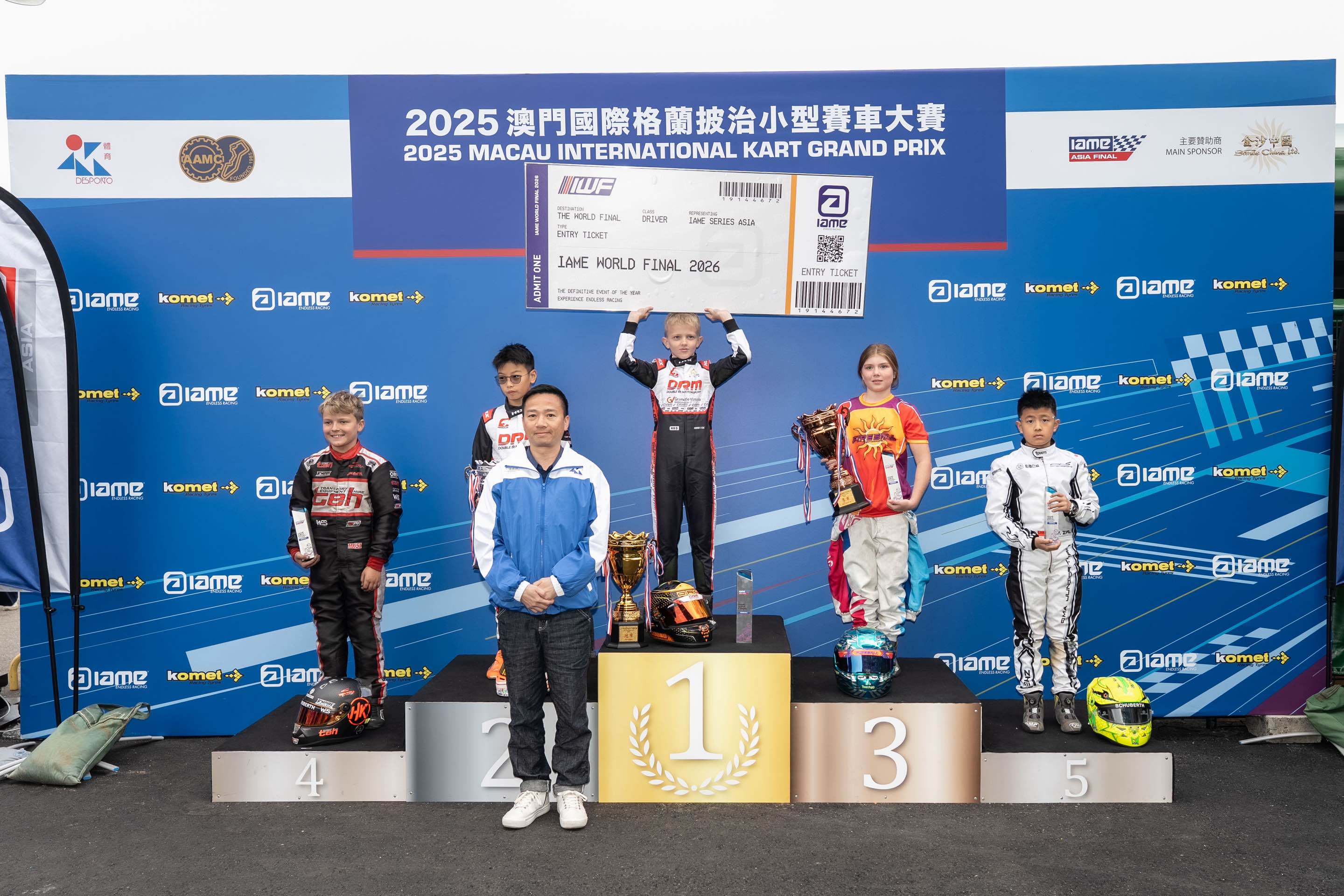 賽事結束後進行頒獎儀式,頒獎嘉賓包括體育局代局長李詩靈、中國-澳門汽車總會會員大會主席鍾國榮、IAME市場總監Marco Moretti、中國-澳門汽車總會理事長何比道、體育局澳門格蘭披治大賽車及大型體育活動廳廳長黃家權。