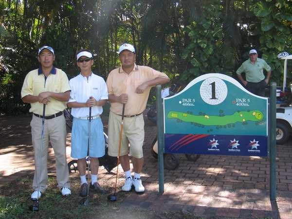 澳門高爾夫球隊梁錦洪、胡伯橋及林柏財比賽前合照