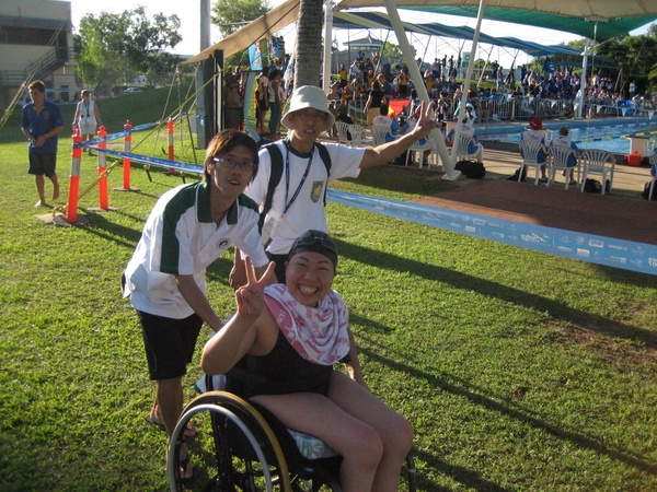 澳門傷殘運動游泳運動員梁玉清賽後攝於賽場