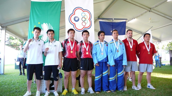 乒乓球方面,男子單打賽事,梁健華在16強首先以局數3:1勝新喀里多尼亞(New Caledonia)隊,再以局數3:1勝新加坡隊進入四強,其後以局數1:3不敵中國台北隊,最終獲得一面銅牌,而何詠龍及高漢星則同樣以局數1:3不敵菲律賓隊和新加坡隊而於16強止步,女子單打首輪賽事中,張靜宜、王小玲及黃翠枝同樣以局數1:3分別不敵泰國、中國和新加坡而出局,而譚雪菲亦以局數0:3不敵中國隊而於首圈出局,男子雙打方面,王志龍/高漢星於首輪賽事以局數3:0勝新喀里多尼亞(New Caledonia)隊,但在第二輪賽事郤以同樣局數0:3被中國台北隊淘汰,而另一組合梁健華/何詠龍在首輪賽事先以局數3:0勝出,再以局數3:1於4強賽事中勝菲律賓隊進入決賽,而在決賽中以局數0:3不敵中國台北隊而獲得