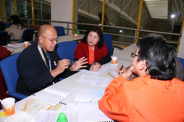 國際大眾體育領袖證書培訓課程已進行了過半,連日來的課程所涉及的大眾體育主題共有八個,包括了「大眾體育的政策及製訂」、「大眾體育哲學」、「大眾體育志願者」、「大眾體育的目標組別」、「體育與健康」、「大眾體育計劃」、「體育與社會資本」、及「體育的策略性發展」。考慮到學員所學習的理論、主題眾多,為提升參加者對有關知識的融會理解,及實際運用時的應變能力,自昨天開始,導師將全體學員分成六組,並讓各人依照已分好的組別,於分組活動期間給予不同的題目進行小組分析及即場口述工作報告,此舉馬上提升了學員間的互動及討論氣氛,師生們對不同的題目意見紛呈,各人並表示效果良好,對提升教學理論之理解確實具有積極、正面的作用。