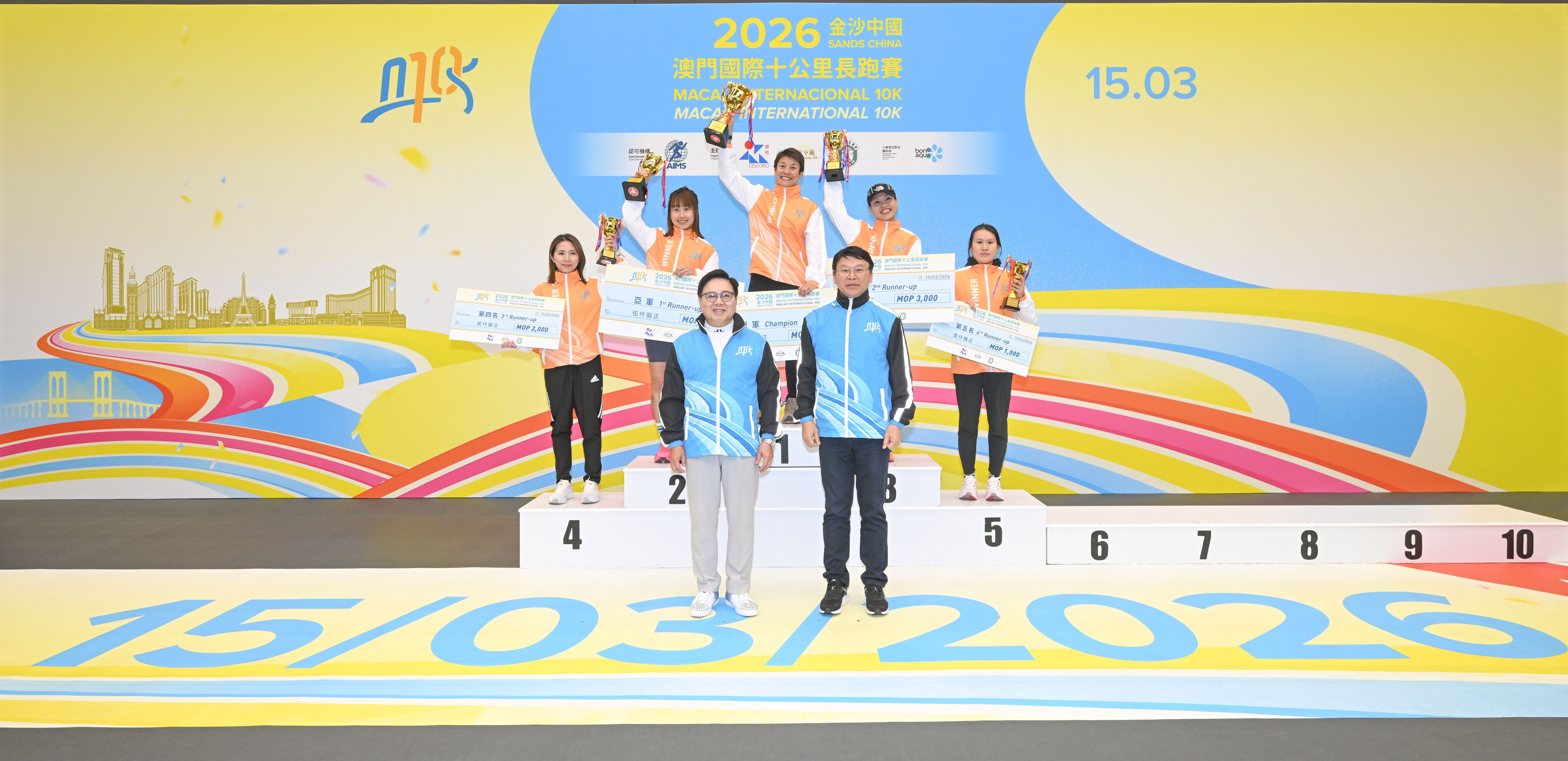 由體育局、金沙中國有限公司及澳門田徑總會舉辦的「2026金沙中國澳門國際十公里長跑賽」今(15)日舉行,十公里賽率先在上午7時進行,而歡樂跑則在上午7時40分起跑。經一輪角逐後,十公里賽男、女子全場總冠軍分別由來自埃塞俄比亞的艾斯發(Aklilu Gebremariam Asfaw)及肯尼亞的莫煒(Fridah Ndinda Mweu)奪得。