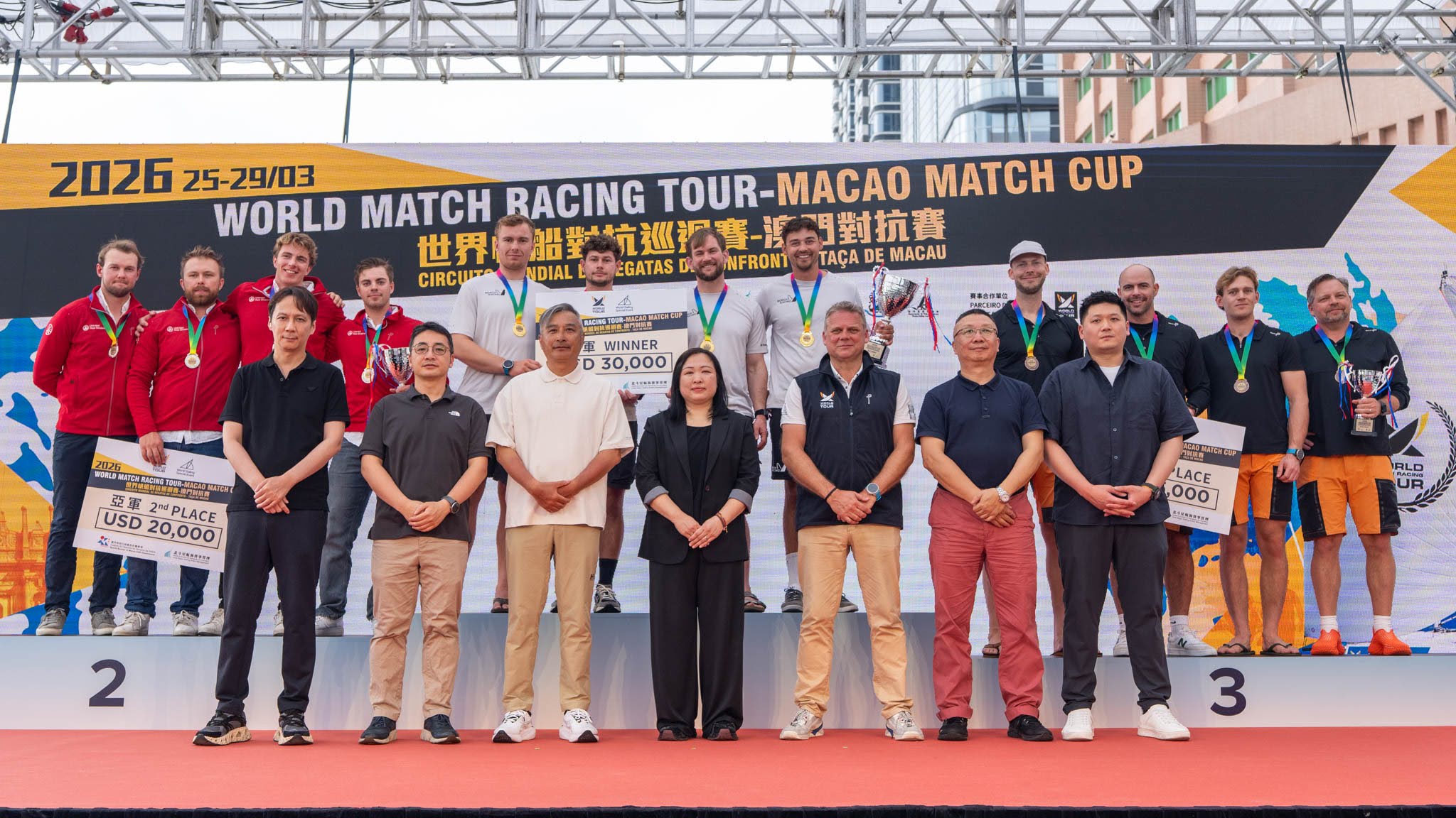 由體育局及北斗星航海賽事管理主辦,海事及水務局及澳門風帆船總會協辦,並由世界帆船對抗巡迴賽作為合作單位的「2026世界帆船對抗巡迴賽—澳門對抗賽」今(29)日圓滿結束,賽事冠軍由丹麥船長博爾奇(Jeppe Borch)奪得。