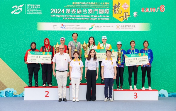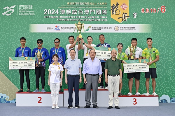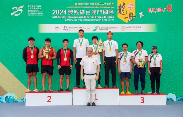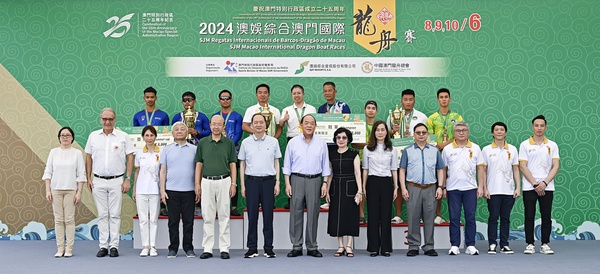 由體育局、澳娛綜合度假股份有限公司、中國澳門龍舟總會主辦,市政署及行政公職局協辦的“慶祝澳門特別行政區成立25周年-2024澳娛綜合澳門國際龍舟賽”,今(10)日端午節正日於南灣湖水上活動中心進行壓軸的賽事。最終中國南海九江分別衛冕澳門國際龍舟邀請賽標準龍500米公開組及女子組冠軍,而大學生邀請賽標準龍500米公開組由聊城大學奪得。行政長官賀一誠出席活動觀賞龍舟賽事,並主持點睛儀式及頒獎。